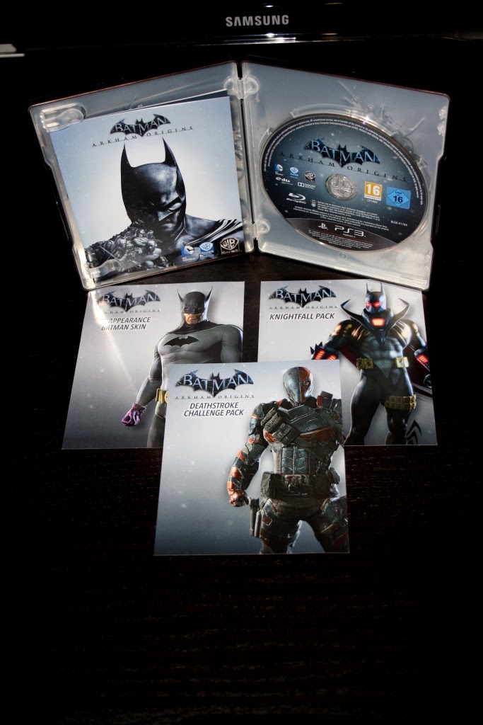 Nanananananananananananananana BATMAN! Eis uma maneira diferente de começar uma análise a mais um jogo do meu herói favorito. Sim, nem o Spiderman consegue o lugar no topo existindo o Batman (embora já lá estivesse estado quando era mais puto). Bom, mas o que interessa mesmo é o jogo que trago até aqui e que dá pelo nome de Batman - Arkham Origins, nada mais nada menos do que uma prequela dos dois outros anteriores que nos leva até ao inicio de actividade do morcego como vigilante e claro, à primeira aparição daquele que considero o seu maior rival de sempre. Vocês sabem que é, não é preciso estar a revelar. Esta edição pela qual optei (e tive a sorte de conseguir) trata-se da Collector's Edition e traz o jogo num bonito steelbook com relevo, um artbook de tamanho acima da média e ainda vários posters dos vilões que aparecem no jogo. Mas a cereja no topo do bolo é a estatueta do Batman juntamente com o Joker, que é sem dúvida uma das melhores que vi nos últimos anos no que diz respeito a edições desde género. Ah, e traz ainda uma catrefada de DLC's para usar no jogo que na minha opinião não faziam falta nenhuma e já deviam fazer parte do mesmo mas adiante. A mesma foi adquirida algures em 2013, lá por meados de Dezembro oriunda de uma loja online por cerca de 60 euros já com portes. Não me arrependo nem um pouco.