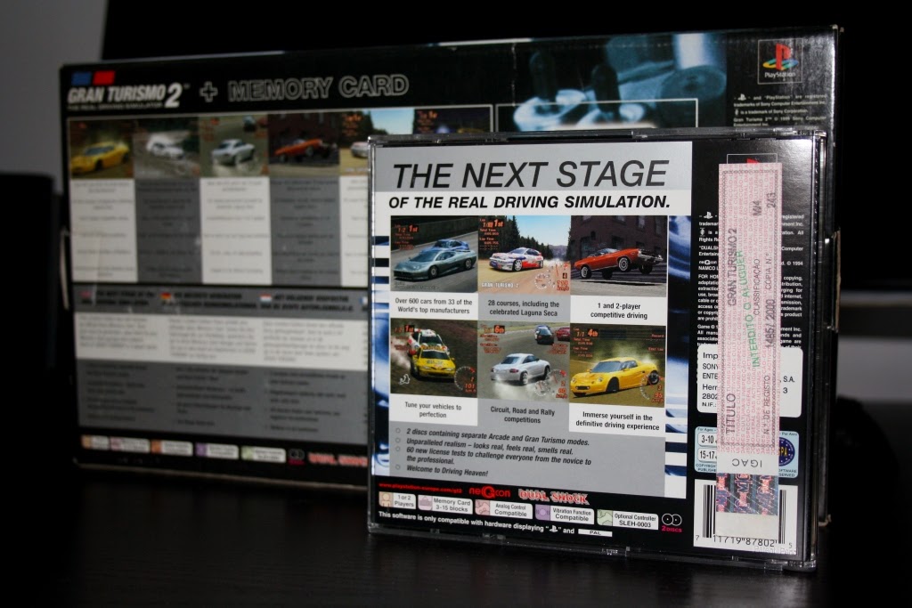 Depois do sucesso que o primeiro jogo atingiu, a Polyphony Digital e o próprio Kazunori Yamauchi tinham em mãos uma tarefa penosa e de grande responsabilidade: criar um GT ainda maior e melhor que o antecessor. Não que fosse difícil mas era sem dúvida um grande desafio, que iria consumir muitas e muitas horas de trabalho. No final de 1999, GT2 viu a luz do dia, tendo chegado à minha colecção só em 2000, mais ou menos na altura em que foi lançado na Europa. Esta minha edição fez-se acompanhar por um Memory Card preto e uma caixa de cartão para albergar o material todo. Ficou-me por cerca de 9.990$ e foi adquirida na tal loja em Almada que já não existe. Infelizmente...
